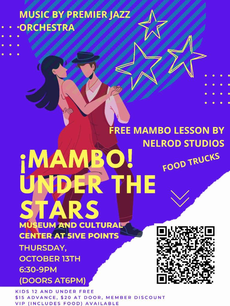 If you want to attend this year’s Mambo Under the Stars, online tickets are still available by visiting the Museum Center’s website. Non-Museum member tickets are $15 with member tickets being $10. You can also get special VIP tickets that come with a buffet and drink ticket, as well as access to the VIP Lounge, available for $40 for members and $50 for non-members. Kids under 12 are free, and you can also pick up tickets at the door for $20! We hope to see you on the dance floor for an unforgettable night on Thursday, October 13th at the Museum and Cultural Center at 5ive Points!