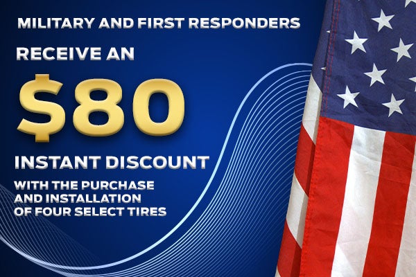 On these name brands: Goodyear®, Michelin, BFGoodrich®, Continental, General, Pirelli, Hankook, Bridgestone, Falken, and Toyo®. *The Ford Military and First Responder Tire Discount Program is available to active and retired Military and First Responders who purchase and have installed a set of four (4) qualifying tires. Qualifying customers are eligible to receive a discount of $80 off participating brands at the time of installation. Participating brands are: Goodyear®, Michelin, BFGoodrich®, Continental, General, Pirelli, Hankook, Bridgestone, Falken, and Toyo®. Toyo medium/commercial truck and Motorsport patterns are excluded. This discount is in addition to any other eligible discount, rebate, or offer a dealer or tire manufacturer may already provide. Tires must be installed at a participating U.S. Ford Dealer, Lincoln Retailer, or Quick Lane® Store. Prior authorization is necessary before work is performed, and program-provided Hero Code must be presented at the time of purchase - ID.me account and validation are required. Hero Code is nontransferable and can only be used by the associated ID.me account holder. Additional details can be found here: Military and First Responders Tire Discount. Maximum of two Hero Codes per calendar year per customer can be generated/claimed. Offer valid for tires purchased and installed 1/1/25 - 12/31/26. Unused 2025 Hero Codes expire after 12/31/25. Unused 2026 Hero Codes expire after 12/31/26. Quick Lane® is a registered trademark of Ford Motor Company. Plus tax and applicable fees. May not be combined with any other offer. Must present coupon at time of write-up. See dealer for details. Offer Expires 12/31/26.